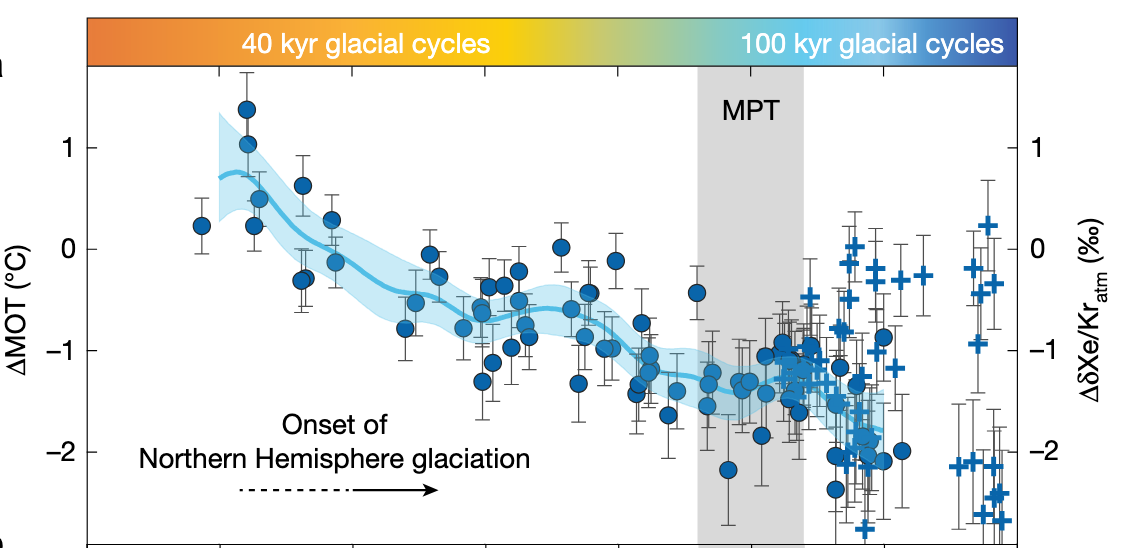 - and… what caused the change from lower magnitude 40kyr cycles to 100kyr cycles across the Mid-Pleistocene Transition (MPT)?