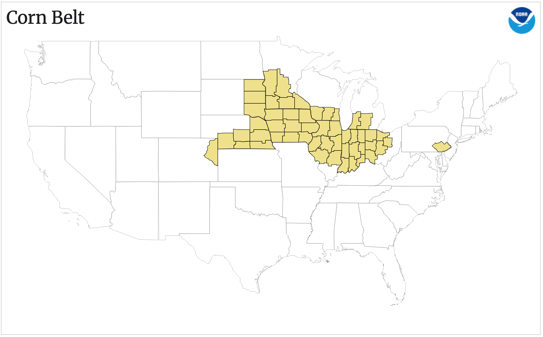NOAA has a great website with its Climate Division data (ClimDiv) which is an aggregated product from the individual station data, but averaged at the division, state, and regional levels. It has averages for 9 regions of CONUS, the big river basins, NWS areas, and multiple agricultural regions. The Corn Belt map for averages is below: