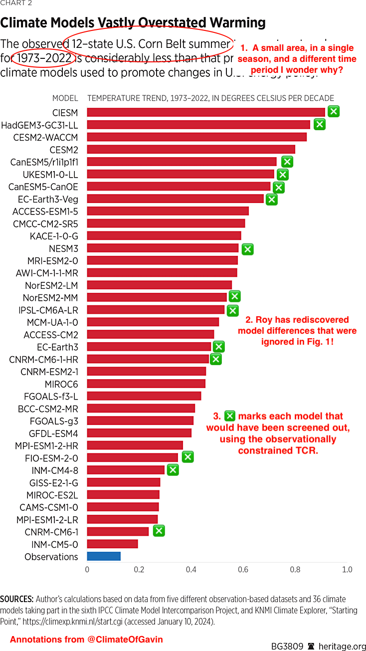 Now we have a slightly more regular statistical comparison, and we can see that this observation is within the 95% spread of about half a dozen models. Thus it’s a plausible (if not likely) match. Given the large number of comparison one could theoretically do, if one area (specifically chosen) is an outlier is not so surprising.