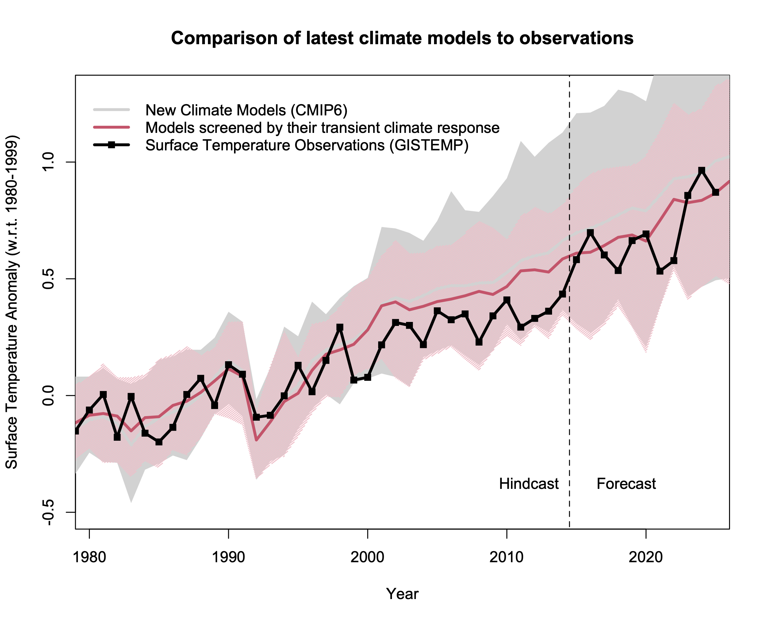 *Note that Hausfather et al. (2020) made a more complete assessment of surface temperature projections from models from 1970 through to CMIP3 (discussed here).